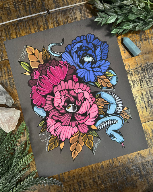 Floral Skeleton Hand Print