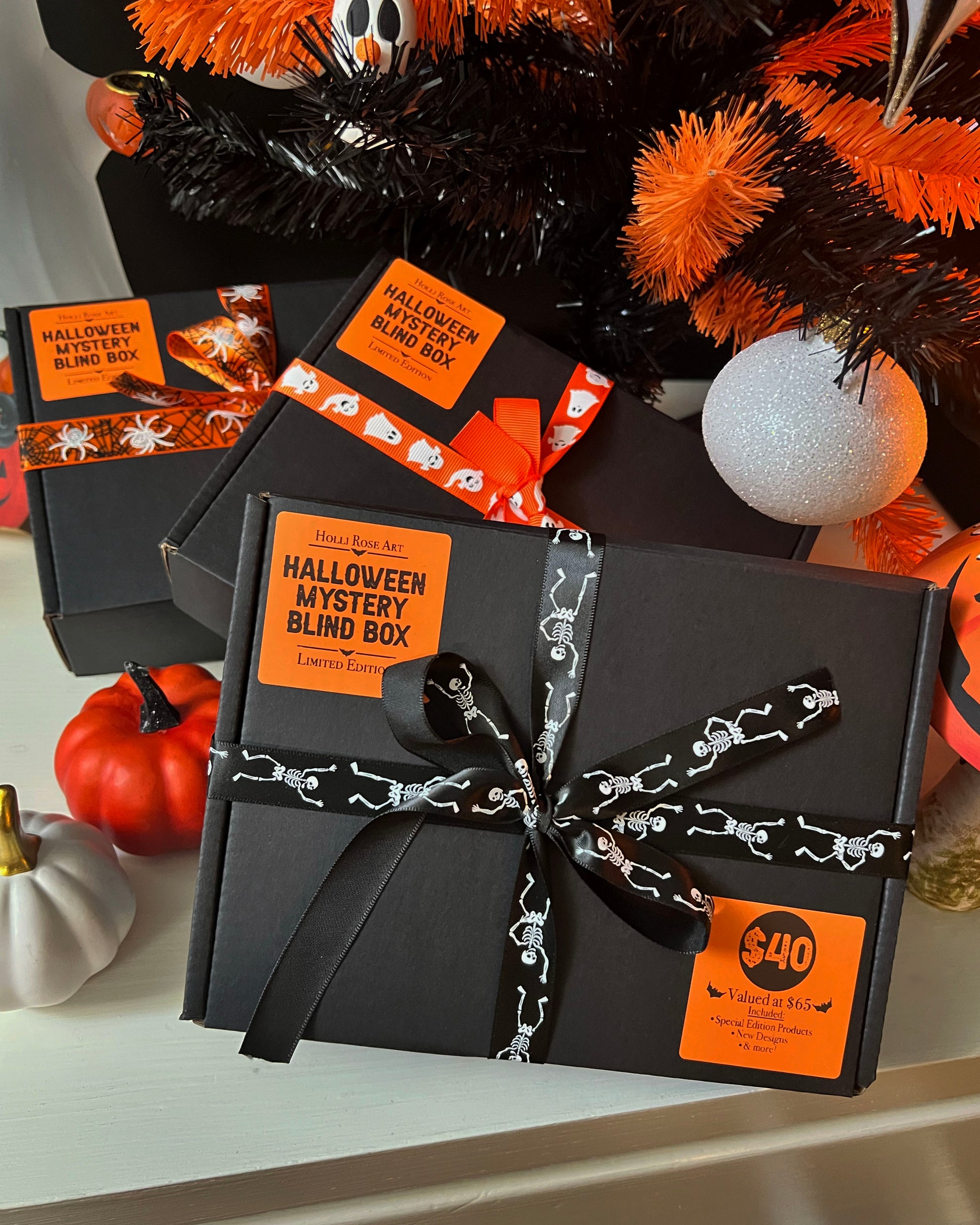 Please note that your box may come with a different type of ribbon at the top, but still Halloween themed none-the-less!